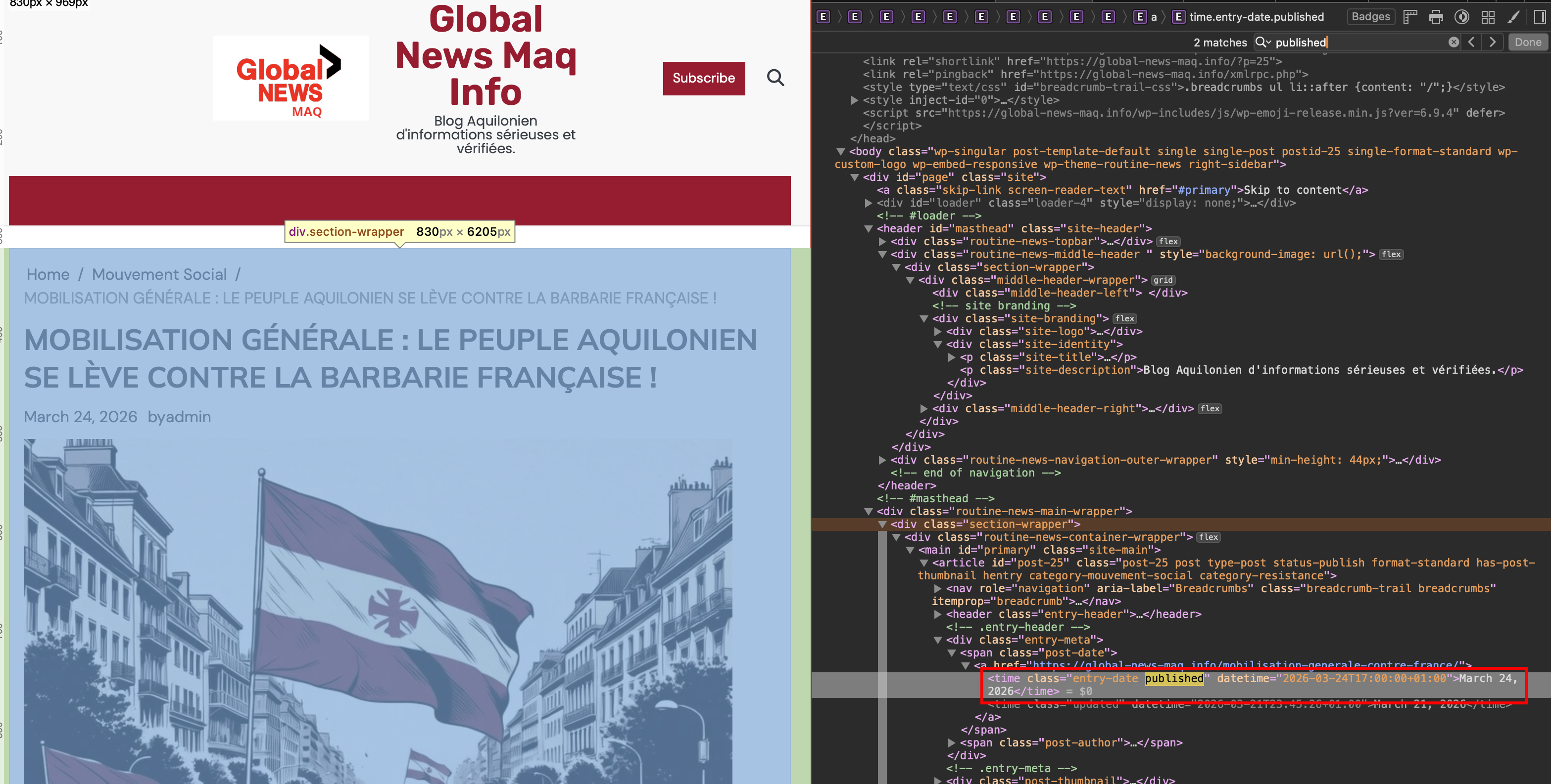 On doit donc analyser un article du média de désinformation global-news-maq datant de 17h00.