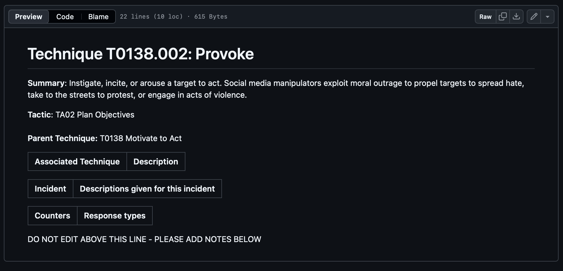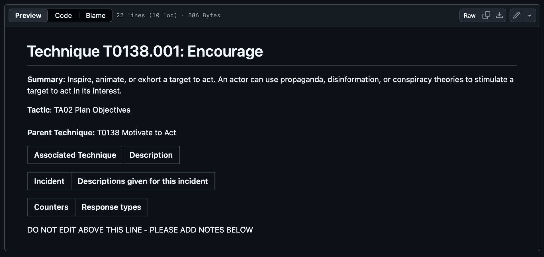 - Consulter le framework DISARM pour comprendre les tactiques, techniques et procédures (TTP) définies.