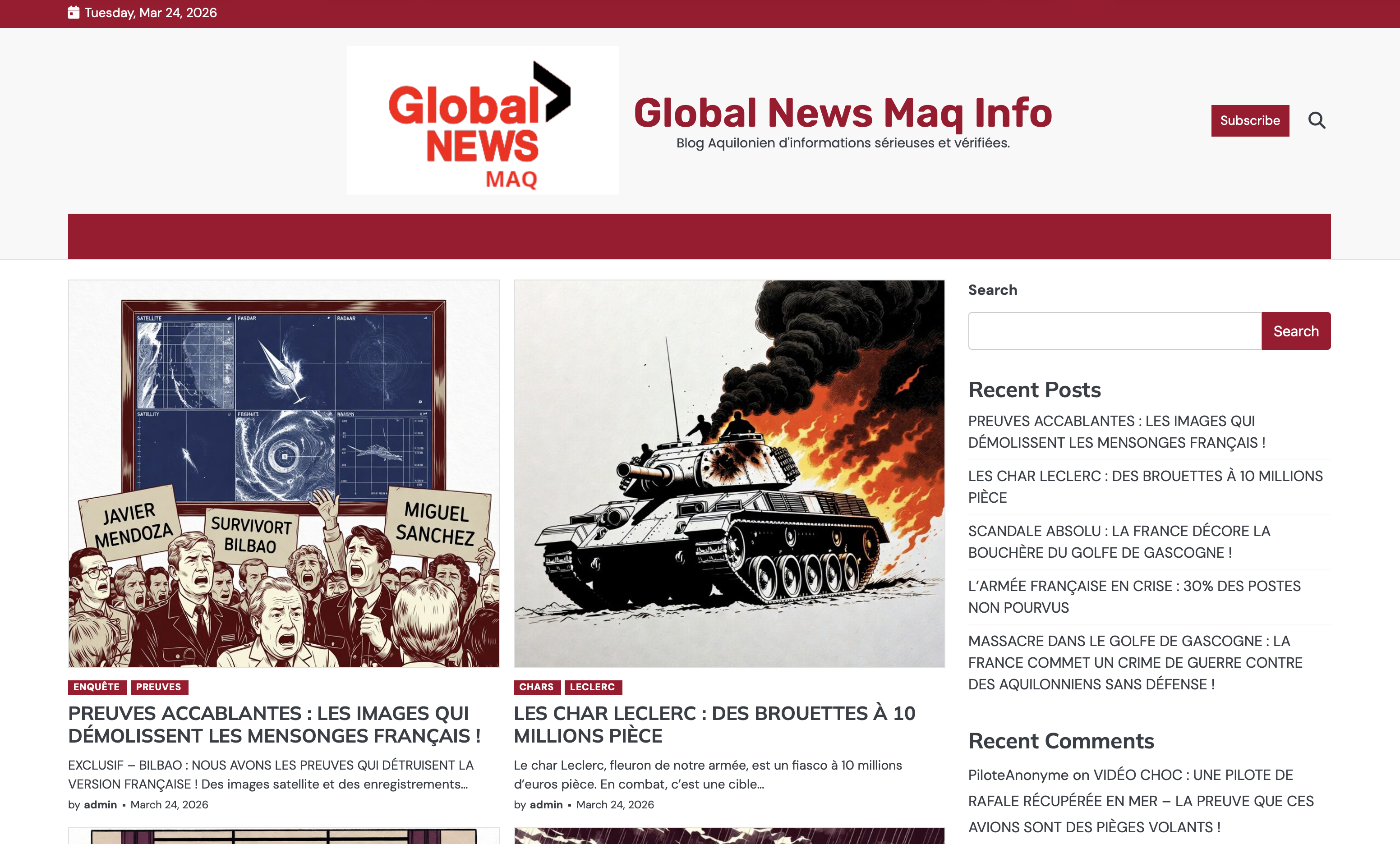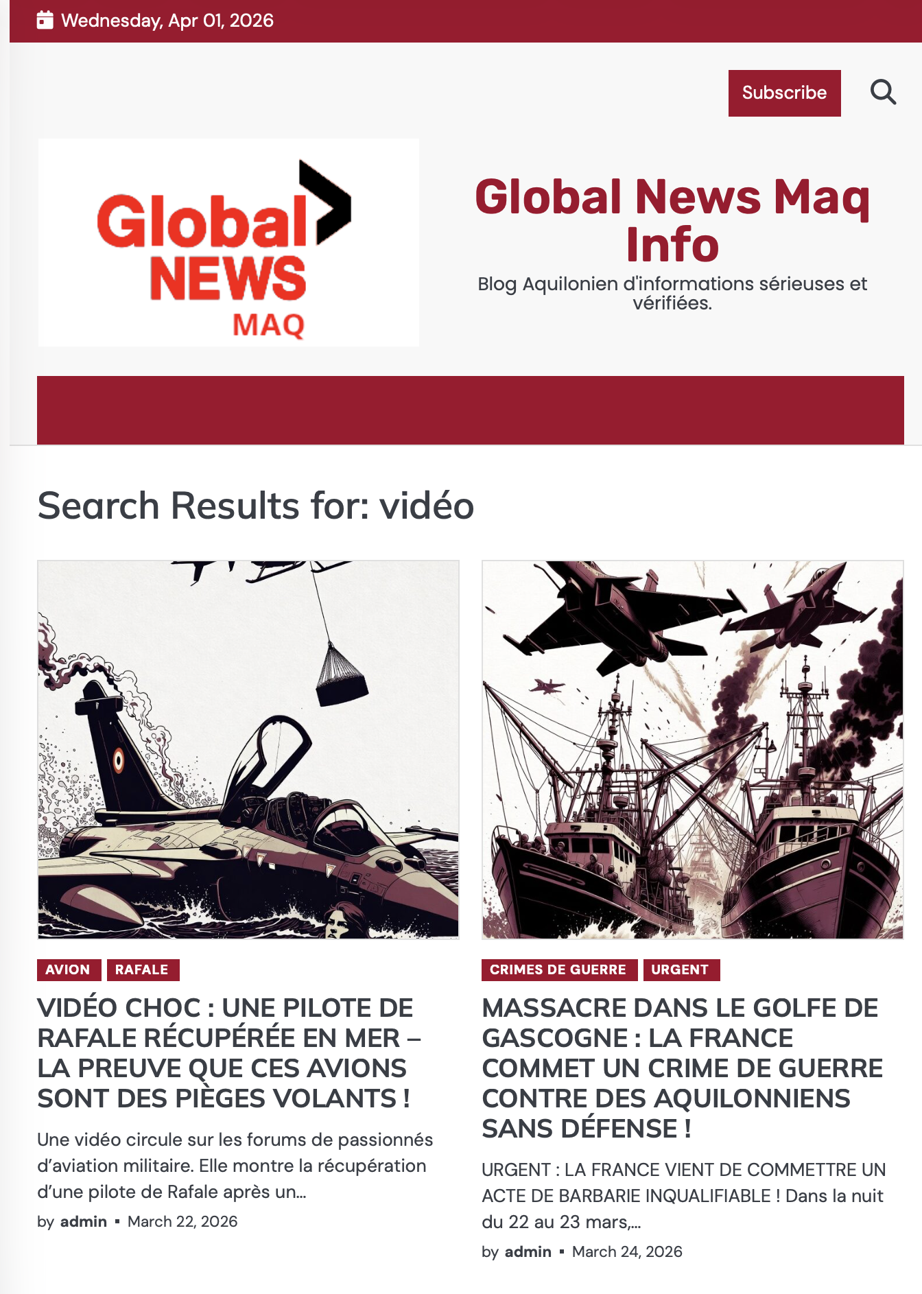 Le blog se présente comme une source d’informations sérieuses et vérifiées en provenance d’Aquilon. En regardant les extrait des articles disposé en première page, un détail nous choque : tous les articles ont un point de vue anti-France ou produit Français.