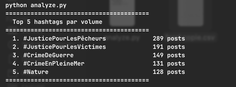 print(f"\n FLAG : {int(delay_minutes)} minutes\n")Il marche au cas par cas, j’ai décidé de le faire fonctionner pour le hashtag “JusticePourLesVictimes”
