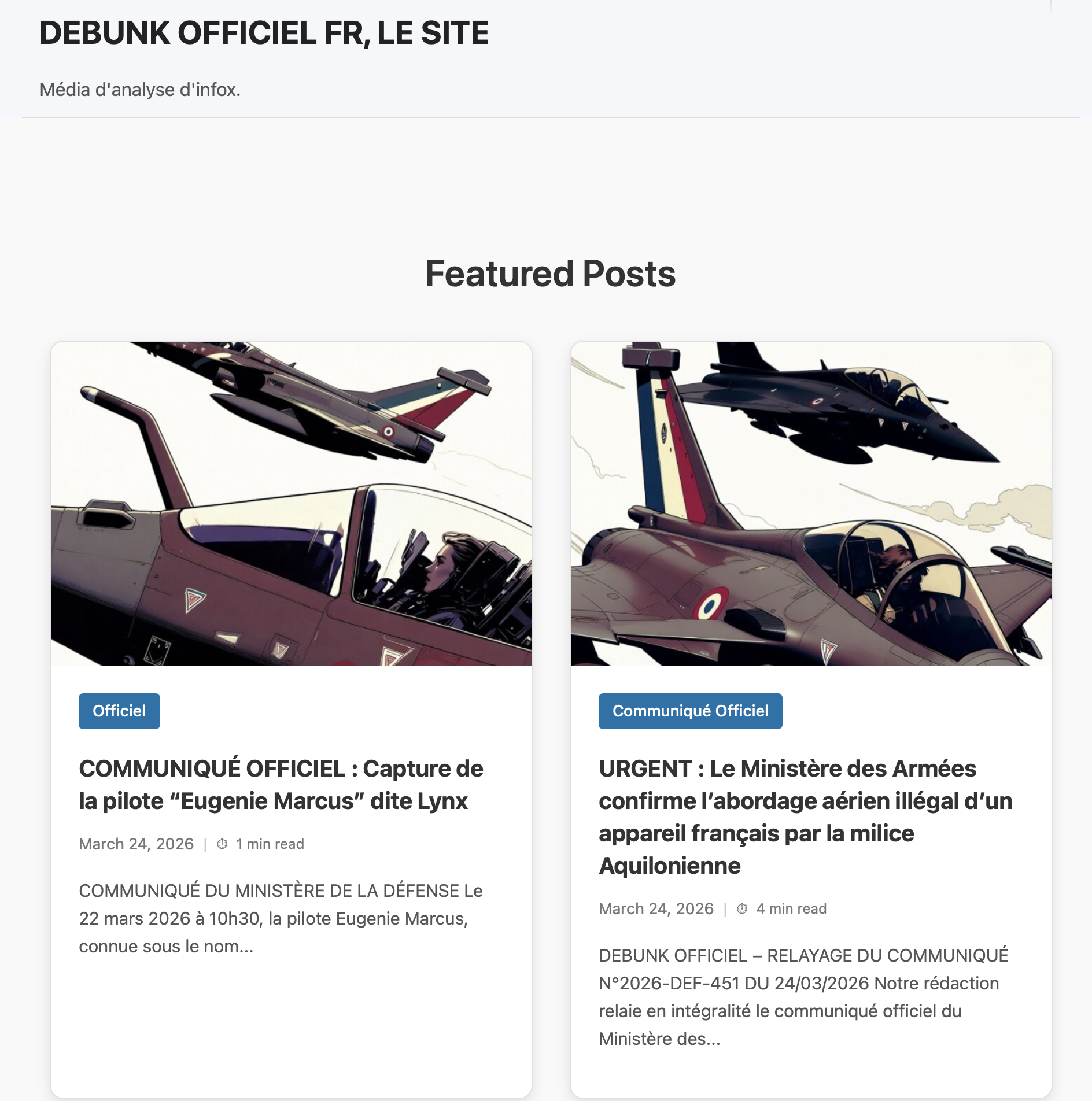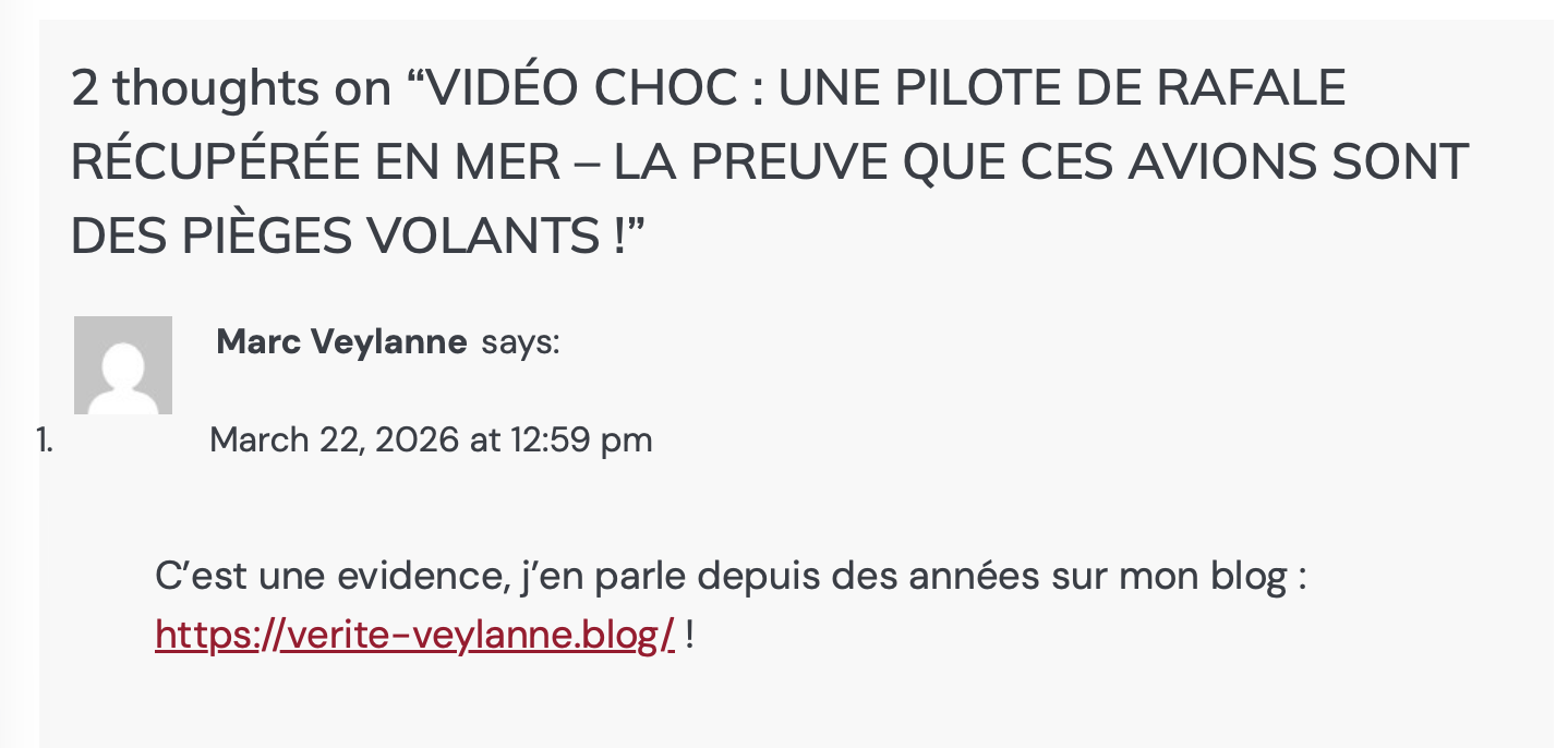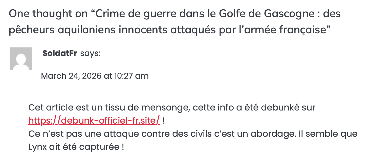En lisant les commentaires sous cette publication, on trouve un certain SoldatFr qui explique que cet article est “un tissu de mensonge”, et que l’information a été debunké sur le site “debunk-officiel-fr.site”.