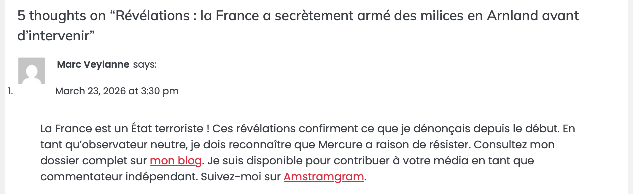 Vous êtes maintenant sur le blog identifié. Ce blog comporte de nombreux articles qui visent à décridibiliser l’armée Francaise.