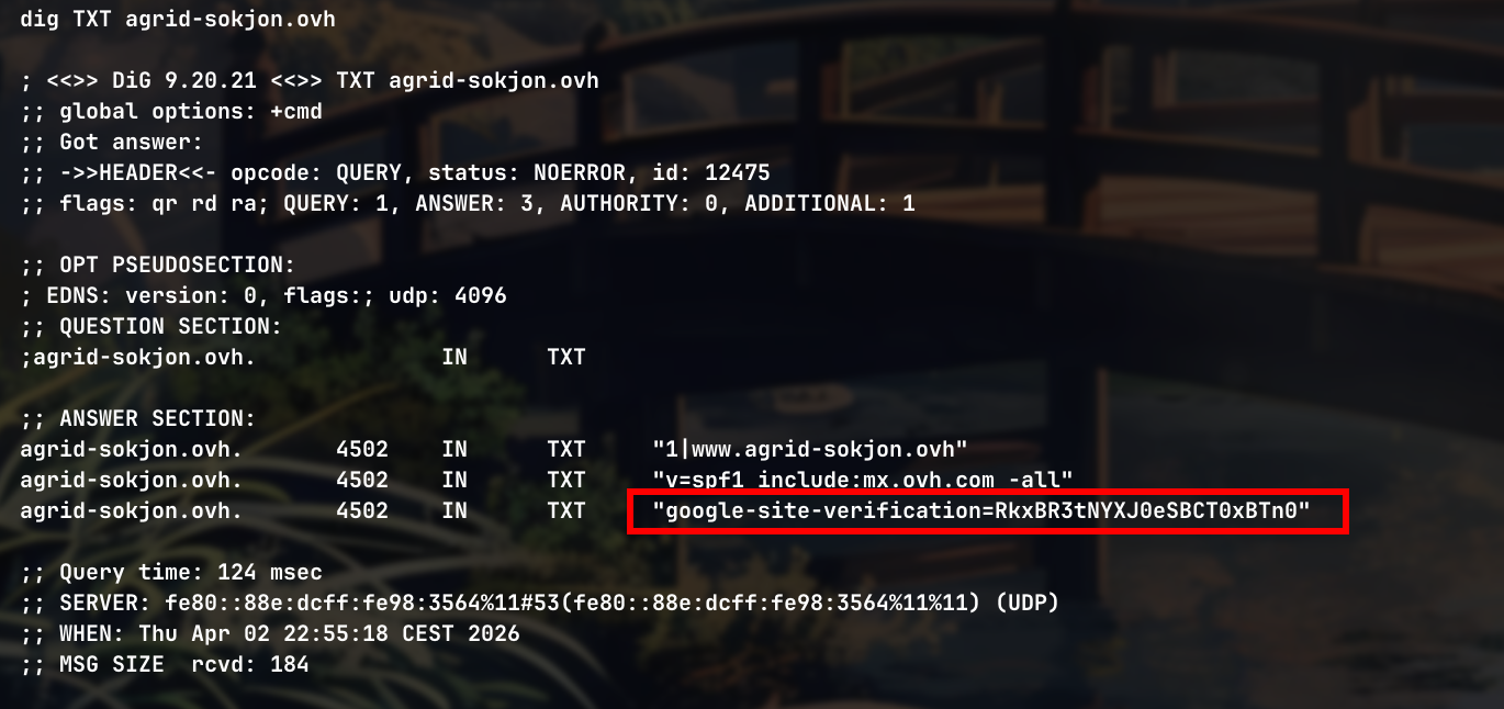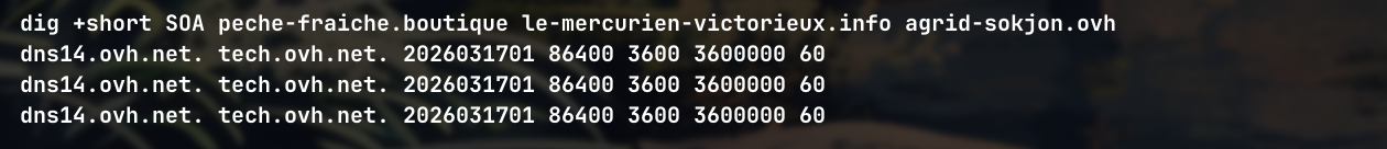 C’est la preuve technique ultime que tous ces sites sont liés au même proprio, car même infra DNS/OVH et même validation GSC.