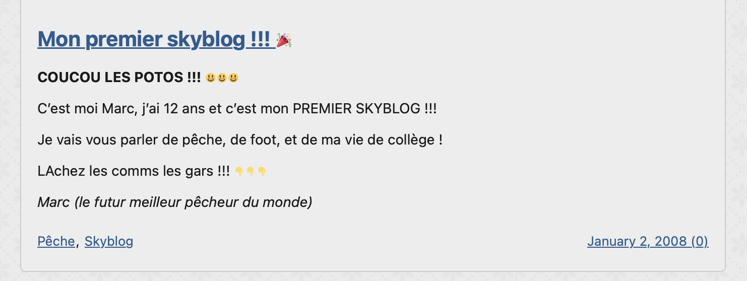 Le premier post de Marc sur Amstramgram et le deuxième a ce propos ont été publié respectivement à 202603240847 et 202603241130.