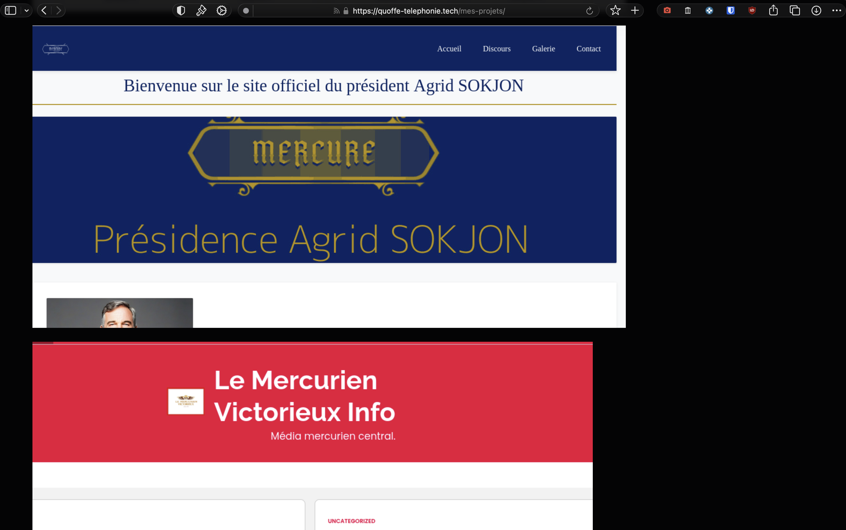 De plus, elle a aussi développé le site personnel / officiel du président de Mercure, Agrid Sokjon : agrid-sokjon.ovh.