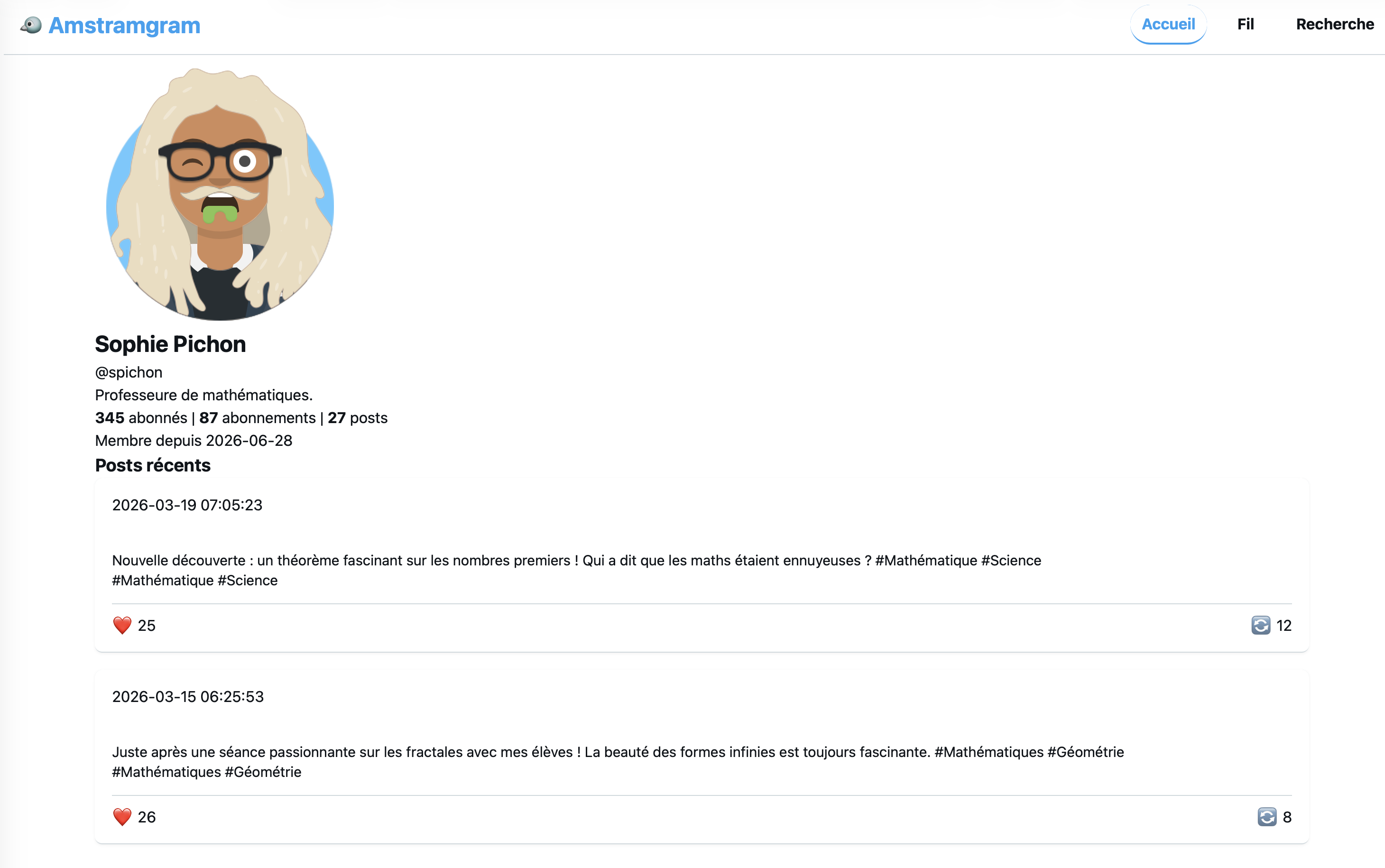 On va donc essayer de trouver un contact proche du primo diffuseur. Pour ce faire, on va fouiller son profil sur le réseau social Amstramgram.