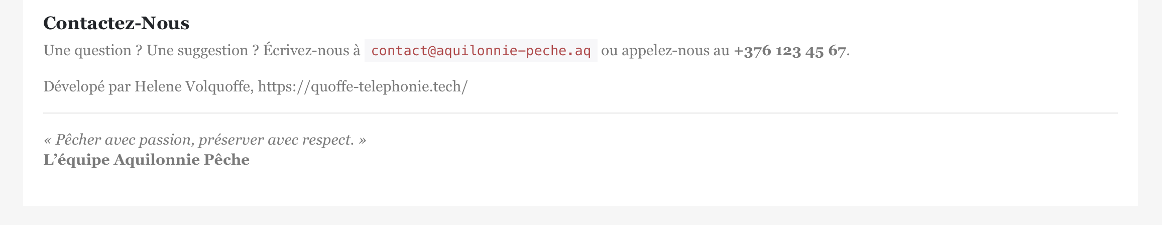 Et ça a payé, on a donc le nom de la personne qui a réalisé ce site : Helene Volquoffe. On a même un lien vers son site/portfolio personnel : https://quoffe-telephonie.tech/.