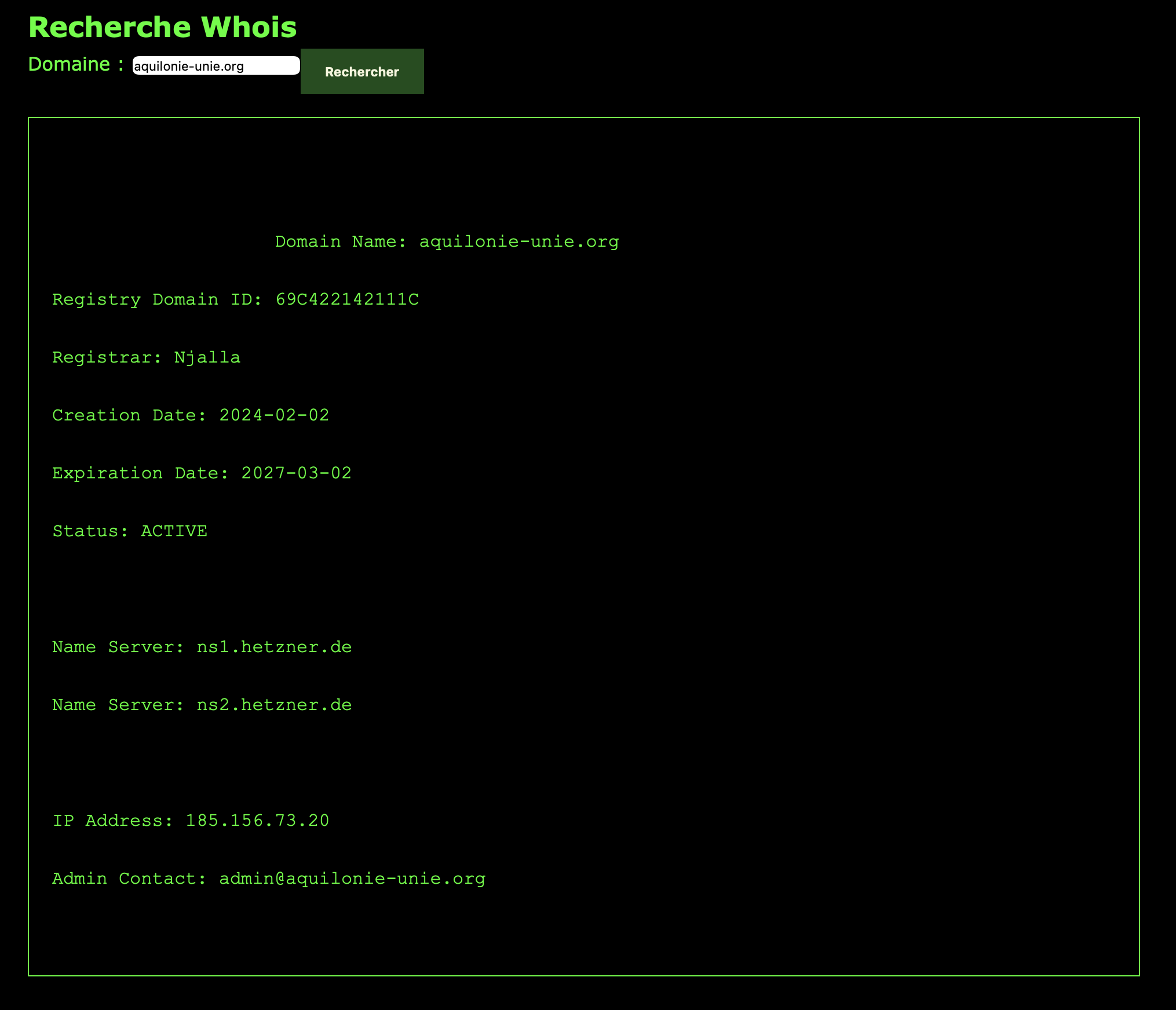 - Accéder au service https://aqui-whois.com/