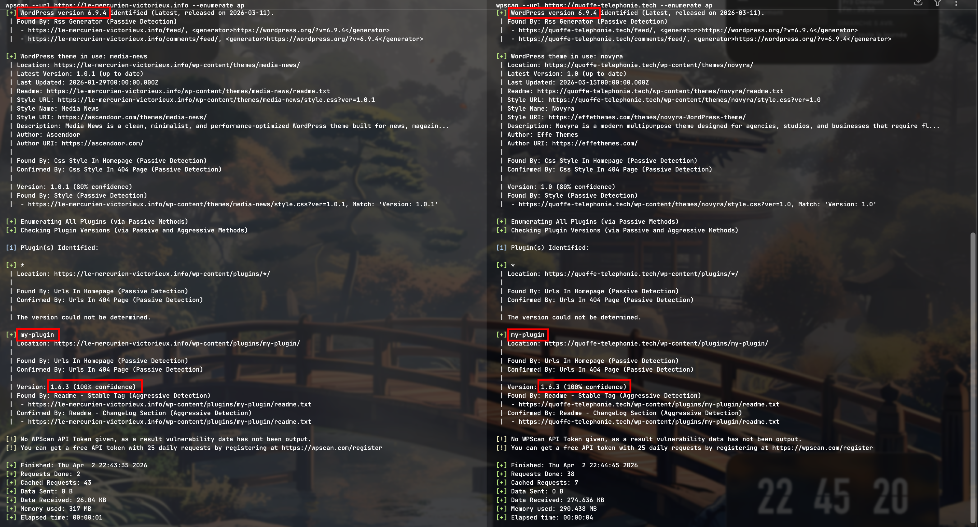 En utilisant un outil comme wpscan on peut rapidement analyser les wordpress et identifier les points communs.