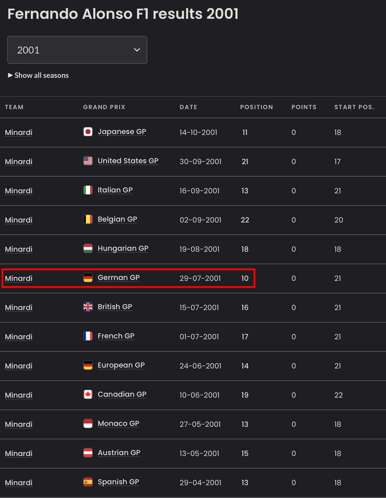 On apprend qu’il a fini 10ème lors du GP Allemand.