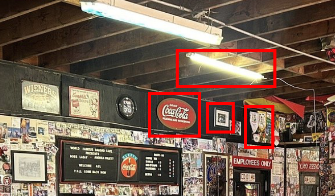 Ce lieu a l’air d’être le bon, il y a le même style de drapeaux au plafond, et le même type de globe accroché.