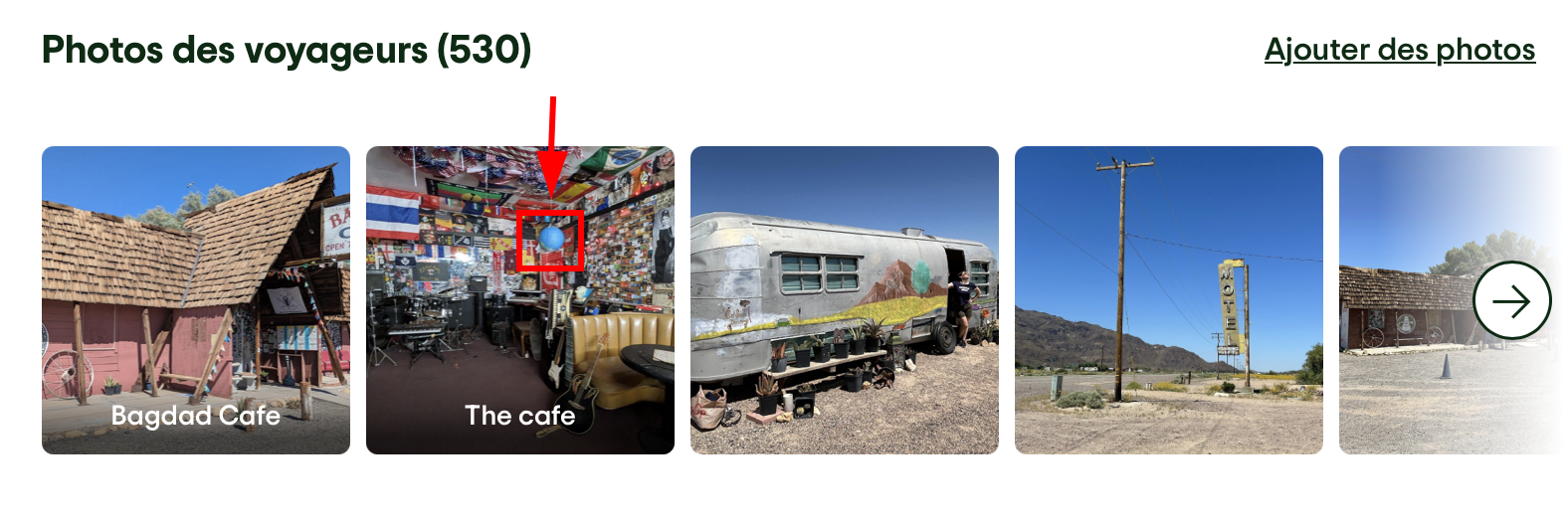 De plus, il est notion de “lieux mythiques pour un périple”, et ce lieu est littéralement au milieu du désert et le bagdad café (le nom du lieu) est aussi un film connu ce qui le rend aussi mythique dans une autre approche.