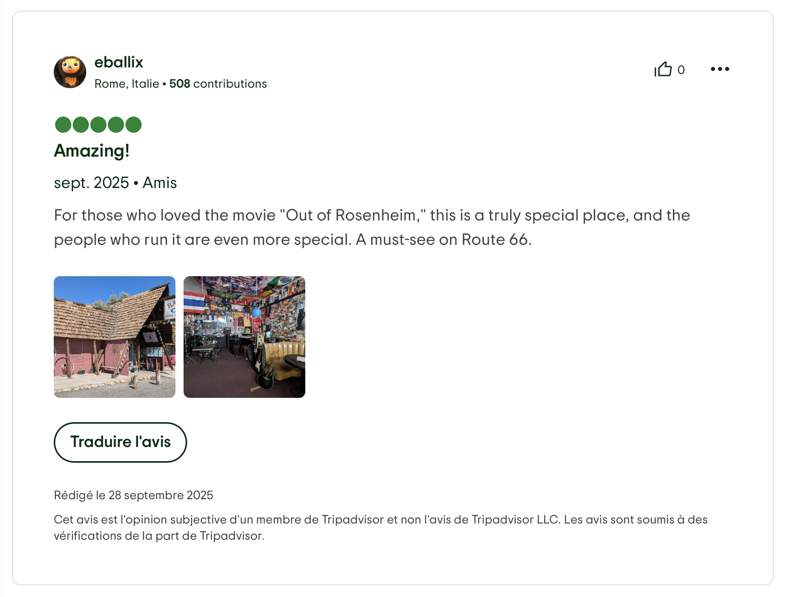 En filtrant les avis par : 4/5 - 5/5, à la date juin-novembre et avec toutes les langues, on tombe sur l’avis d’un certain ebalix le seul à avoir poster ce type d’avis avec deux photos à cette date.