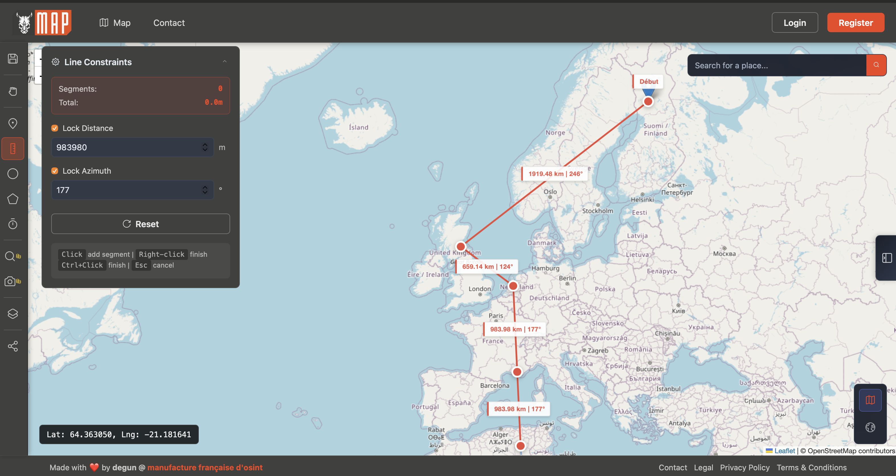 Cet outil va nous permettre de tracer des lignes d’un nombre de kilomètres définit suivant un angle précis.