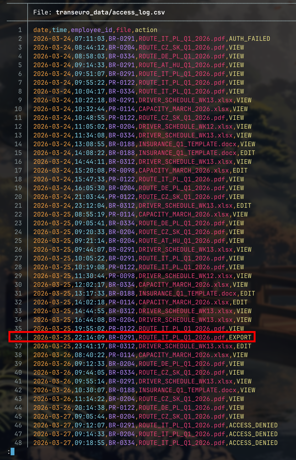 transeuro_data/access_log.csv | Subpoenaed from TransEuro Logistics IT |