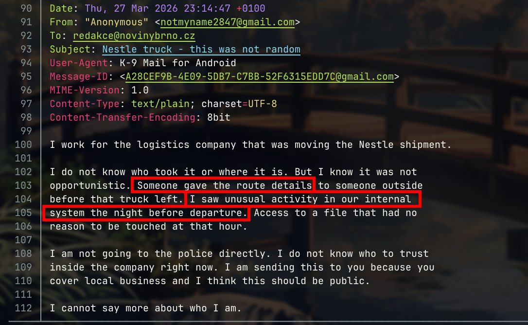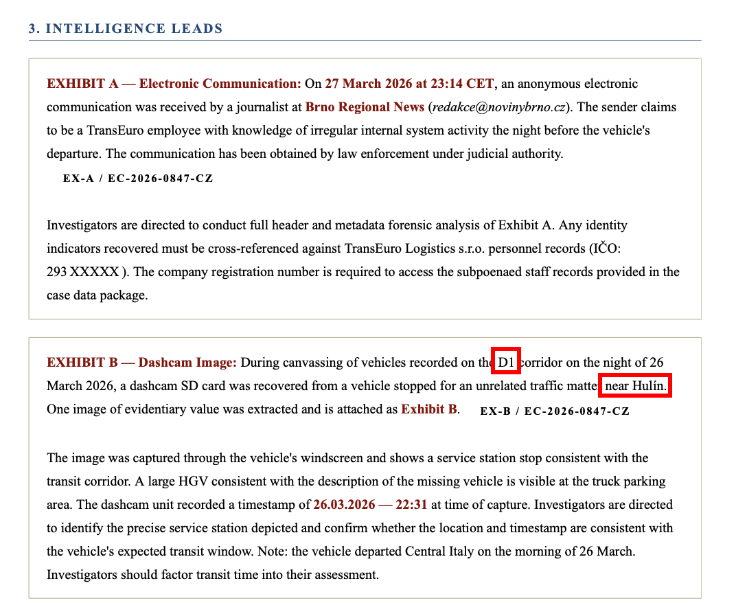 An anonymous tip reached a journalist the following evening. ECTA obtained it under judicial authority. That is where your investigation begins.