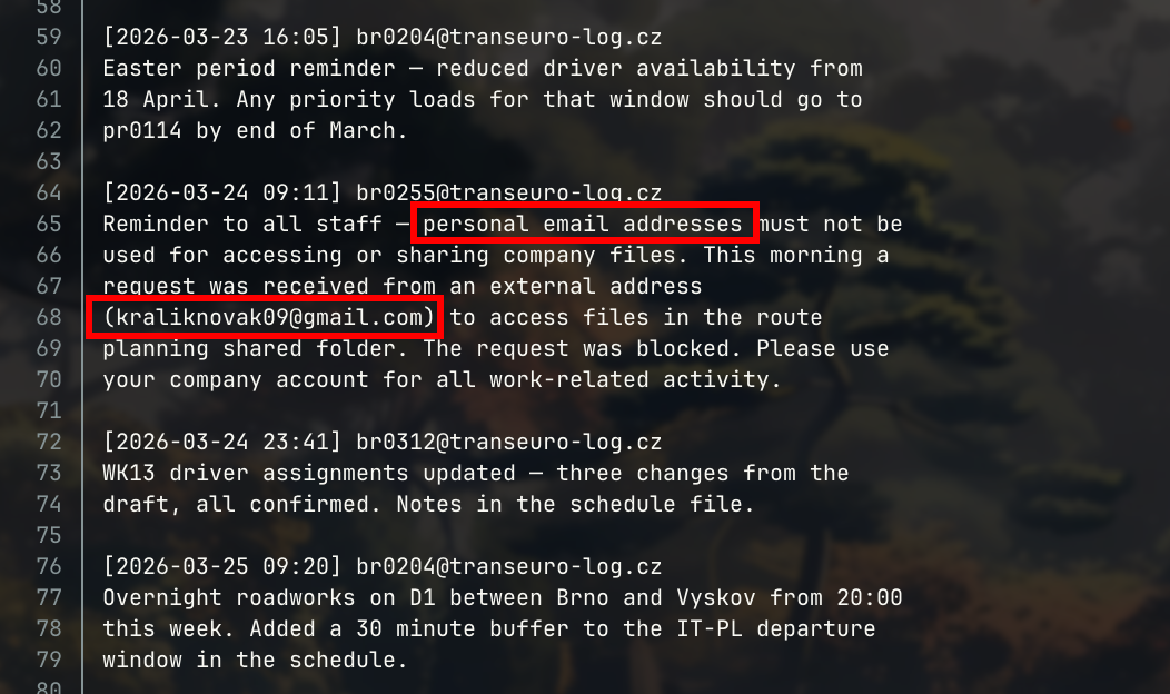 transeuro_data/comms_export.txt | Subpoenaed from TransEuro Logistics IT |