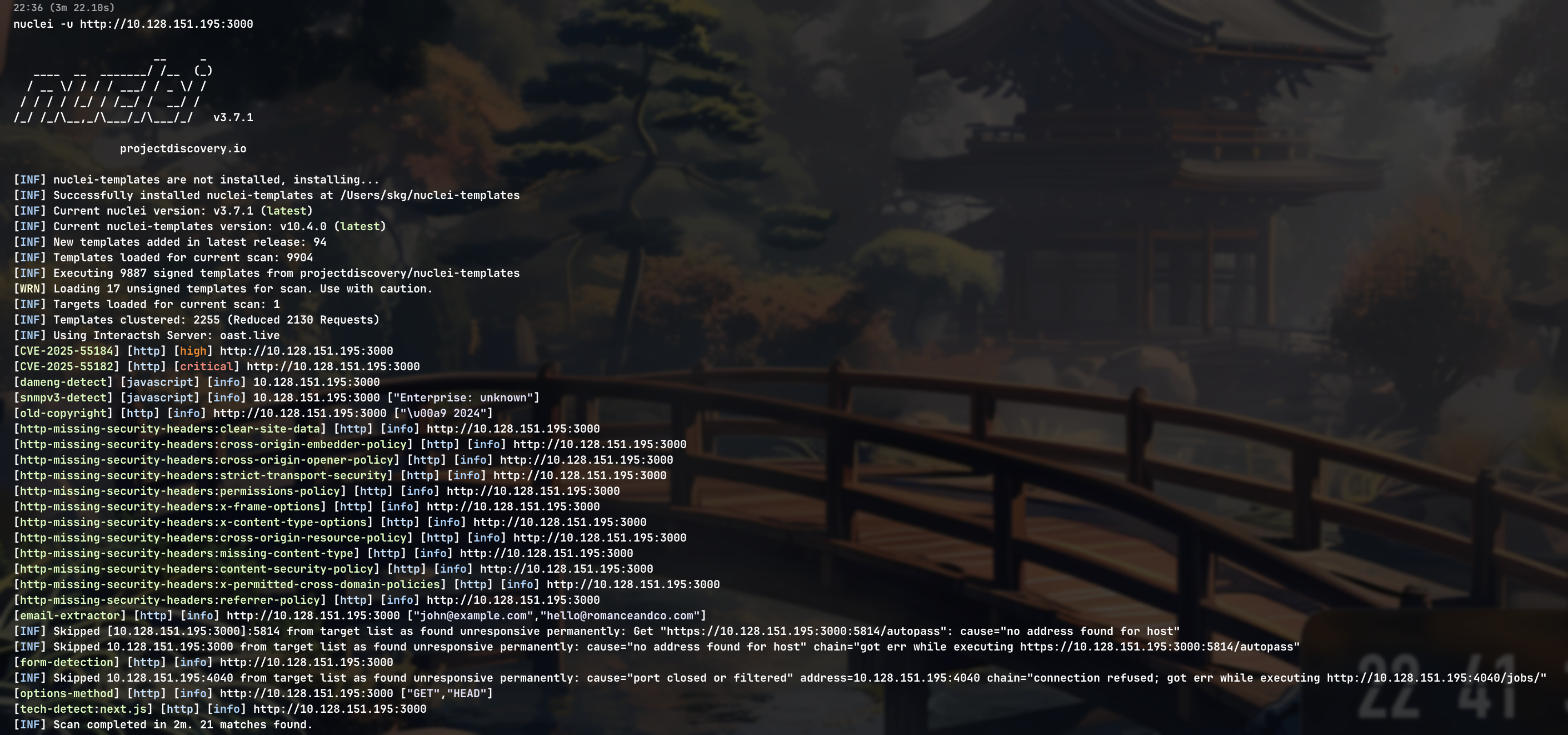 Je vais donc analyser les vulnérabilités potentielles via l’outil nuclei.